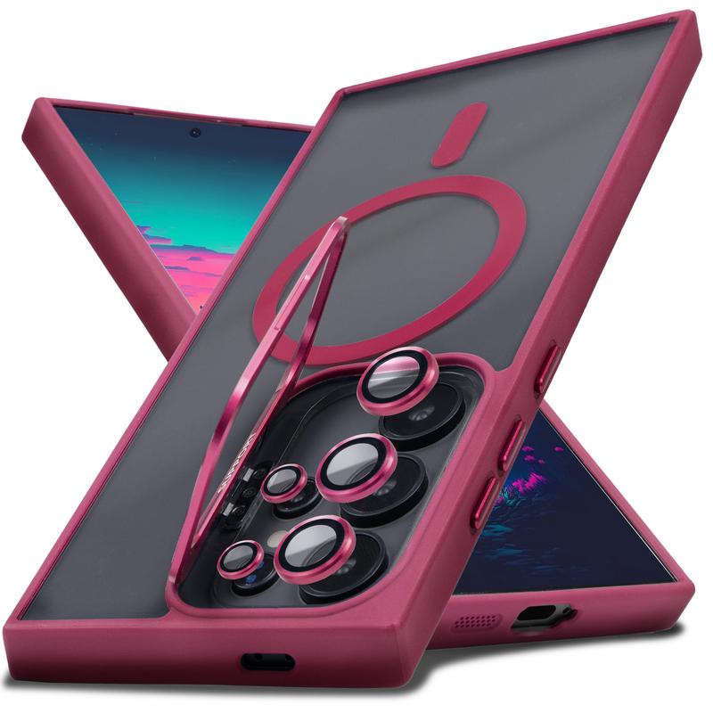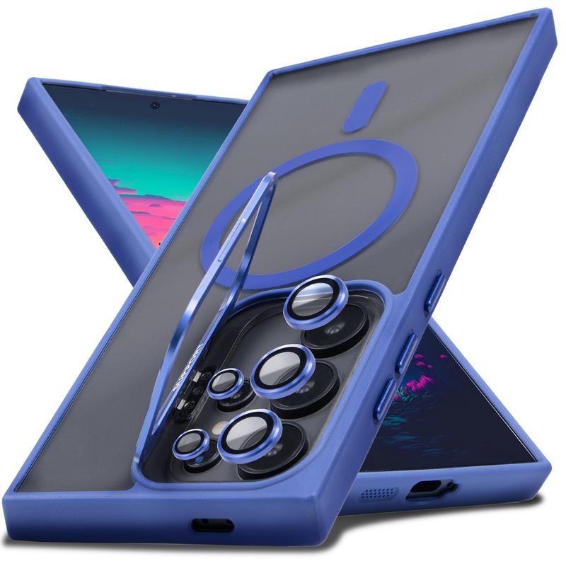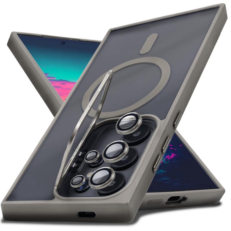 Shockproof Clear MagSafe Case with Camera Ring Stand & Lens Protector For Samsung Galaxy